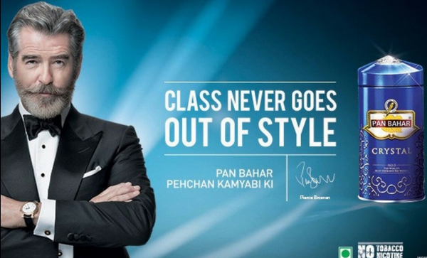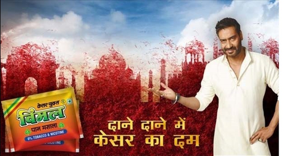 Actor Ajay Devgn is seen to promote the Vimal brand – on radio, in print and TV ads. He tells us that it is elaichi – cardamom that he promotes and/or the paan masala that contains no tobacco. However, the advertising is rather ambiguous. After the ad, we also see/hear the statutory warning about paan masala being ‘injurious to health’.